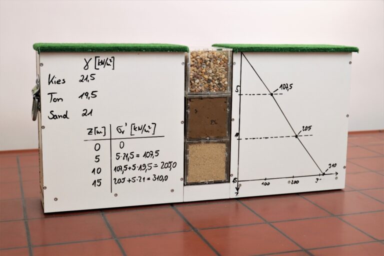 Disziplinspezifische Lehr- und Lernhürden („bottlenecks“) erschweren oftmals den Lernprozess, ohne dass diese von den Lehrenden als Expert*innen ihres Fachs wahrgenommen werden. In dem hochschulübergreifenden Projekt „Decoding the Disciplines: Mehrere Expert*innen widmen sich einem gemeinsamen Bottleneck“ wurde erarbeitet, wie Decoding the Disciplines-Interviews mit mehreren Lehrenden ein und desselben Fachs (Geotechnik) zur selben Lernhürde für die Weiterentwicklung der Lehre genutzt werden können. Dabei wurde ein systematischer Prozess zur Identifikation der Bottlenecks am Beispiel der Vertikalspannungsverteilung im Boden herangezogen, um unterschiedliche Herangehensweisen bei der Berechnung dieser Spannungsverteilung und dabei auftretende Hürden herauszuarbeiten. Anschließend wurde die kollaborative Weiterentwicklung der Lehre vorangetrieben, indem konkret auf das untersuchte Bottleneck bezogene Lehr-Lern-Materialien wie z. B. mit Boden gefüllte Plexiglaswürfel (s. u.) und Einsatzszenarien für das Fach Geotechnik gemeinsam entwickelt wurden.